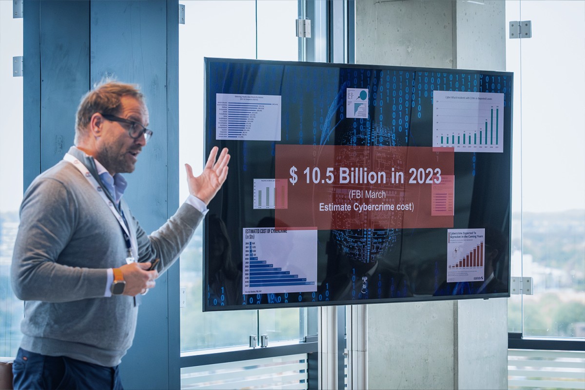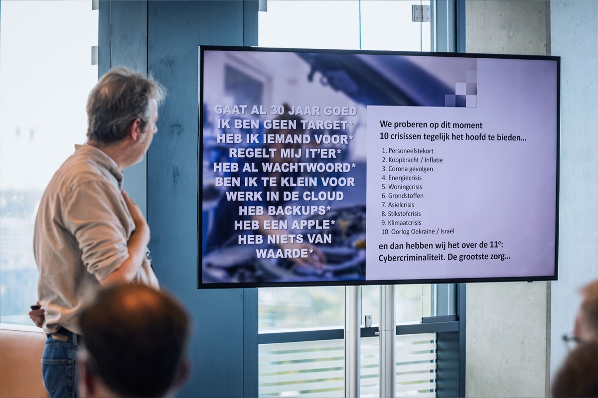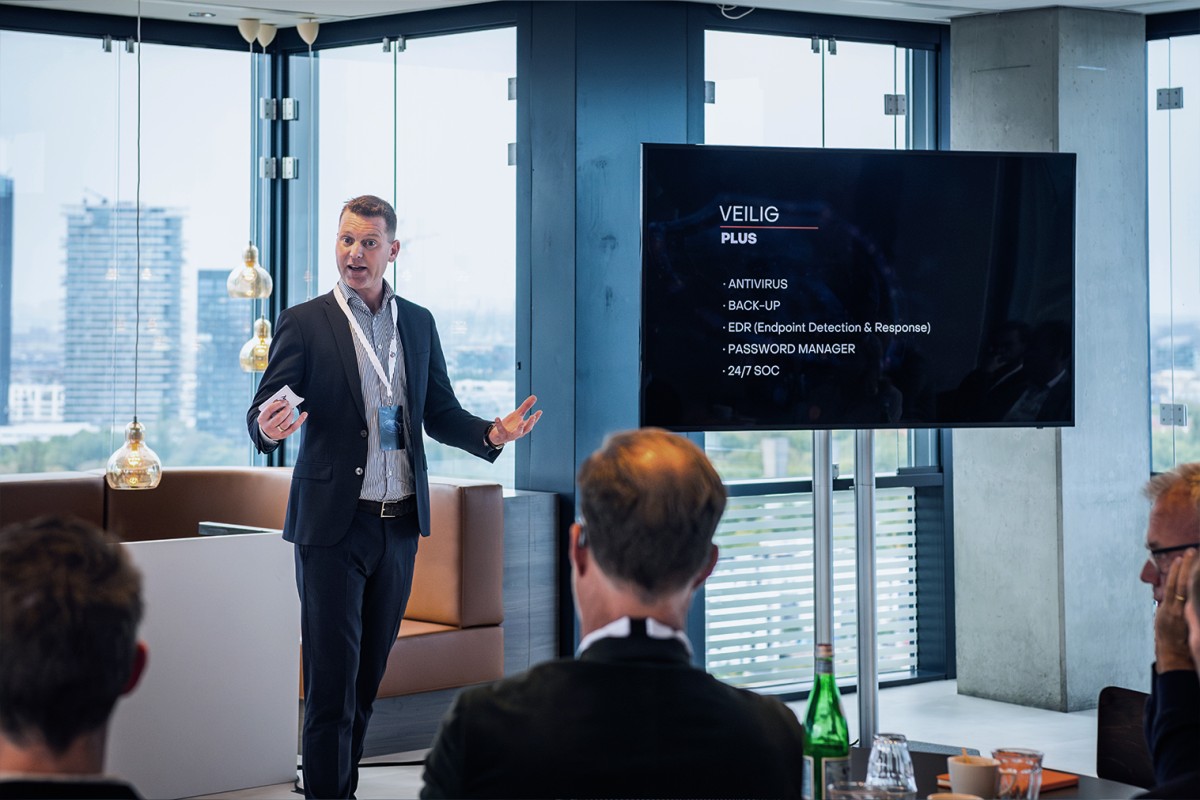 Pieter introduceerde ook drie beveiligingspakketten op maat, variërend van basisbeveiliging tot uitgebreide premiumoplossingen, om bedrijven te helpen bij het verbeteren van hun IT-veiligheid. Hij benadrukte dat deze geïntegreerde aanpak leidt tot minder administratie, een betere beveiliging door samenwerking met experts, en het uit handen nemen van de beveiligingsmonitoring, zodat bedrijven zich kunnen richten op hun kernactiviteiten.