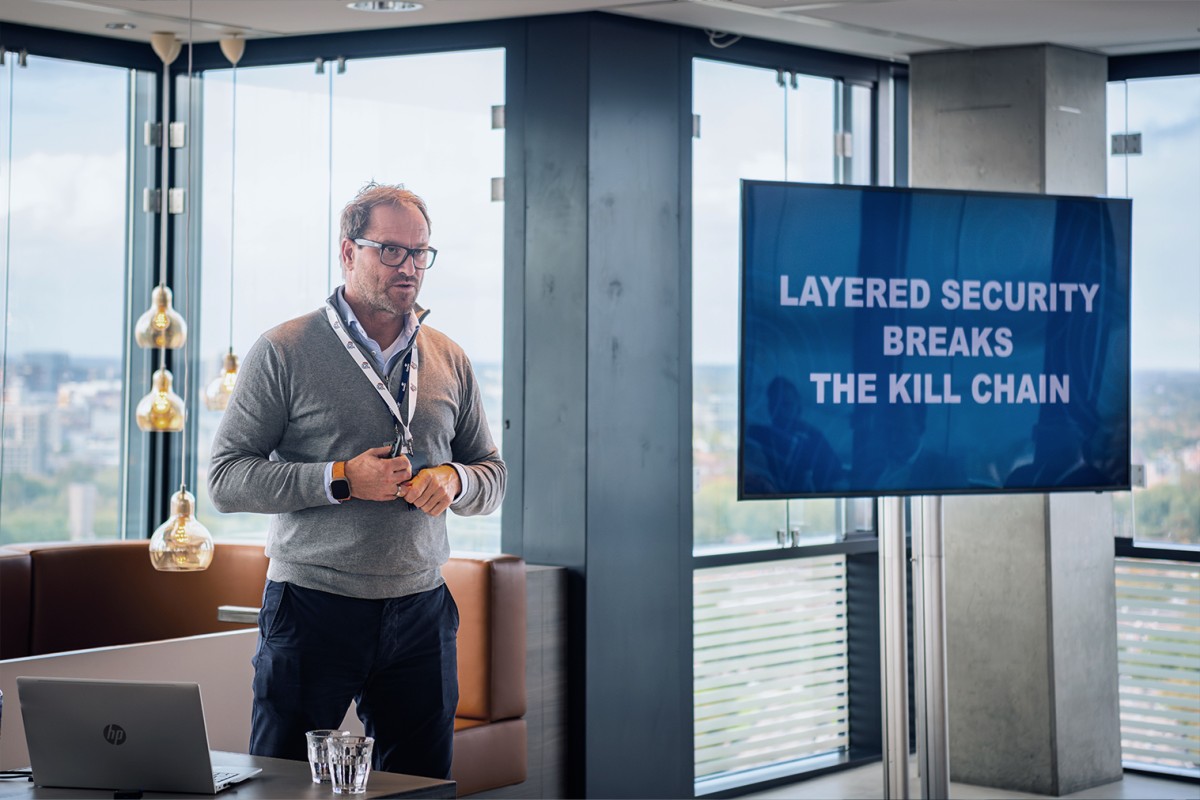 Hij benadrukte dat de toename van geavanceerde bedreigingen, zoals ransomware en DDOS-aanvallen, vraagt om een holistische benadering van beveiliging, waarbij verschillende lagen samenwerken om kwetsbaarheden te minimaliseren. Marwin introduceerde ook de Defense-in-Depth strategie, die meerdere beveiligingslagen toepast om de "kill chain" van cyberaanvallen te doorbreken en zo een effectievere verdediging op te bouwen.
